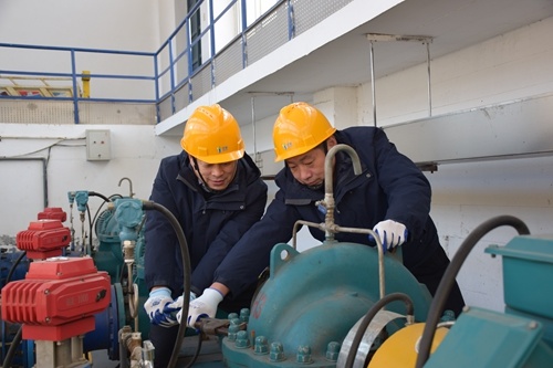 為保障嚴寒天氣下調水的安全穩(wěn)定,鄒平仁源周密部署、積極準備,全力加強預報預測、巡查防守和應急準備。做好清淤工作,組織工作人員開展了胡樓引黃泵站攔污柵調水前清淤,同時組織檢修人員對潛水軸流泵進行全面檢測維保,確保引水工作順利,引水水量達標。加強預報預測,中控室全面把控各項數(shù)據(jù)監(jiān)測,通過自動化調度和信息化系統(tǒng),緊盯氣溫、水溫及進水泵站進水情況,保障泵站設備運行安全穩(wěn)定。保障巡查防守,加強對引黃渠道的巡查力度,安排專人每日往返60多公里的黃河干渠,進行河道巡查、測流等保障任務,并有序開展河道破冰除冰工作,及時處理因持續(xù)低溫導致的渠道過流能力下降等問題,保證渠道過水暢通,確保調水工作運行有序。