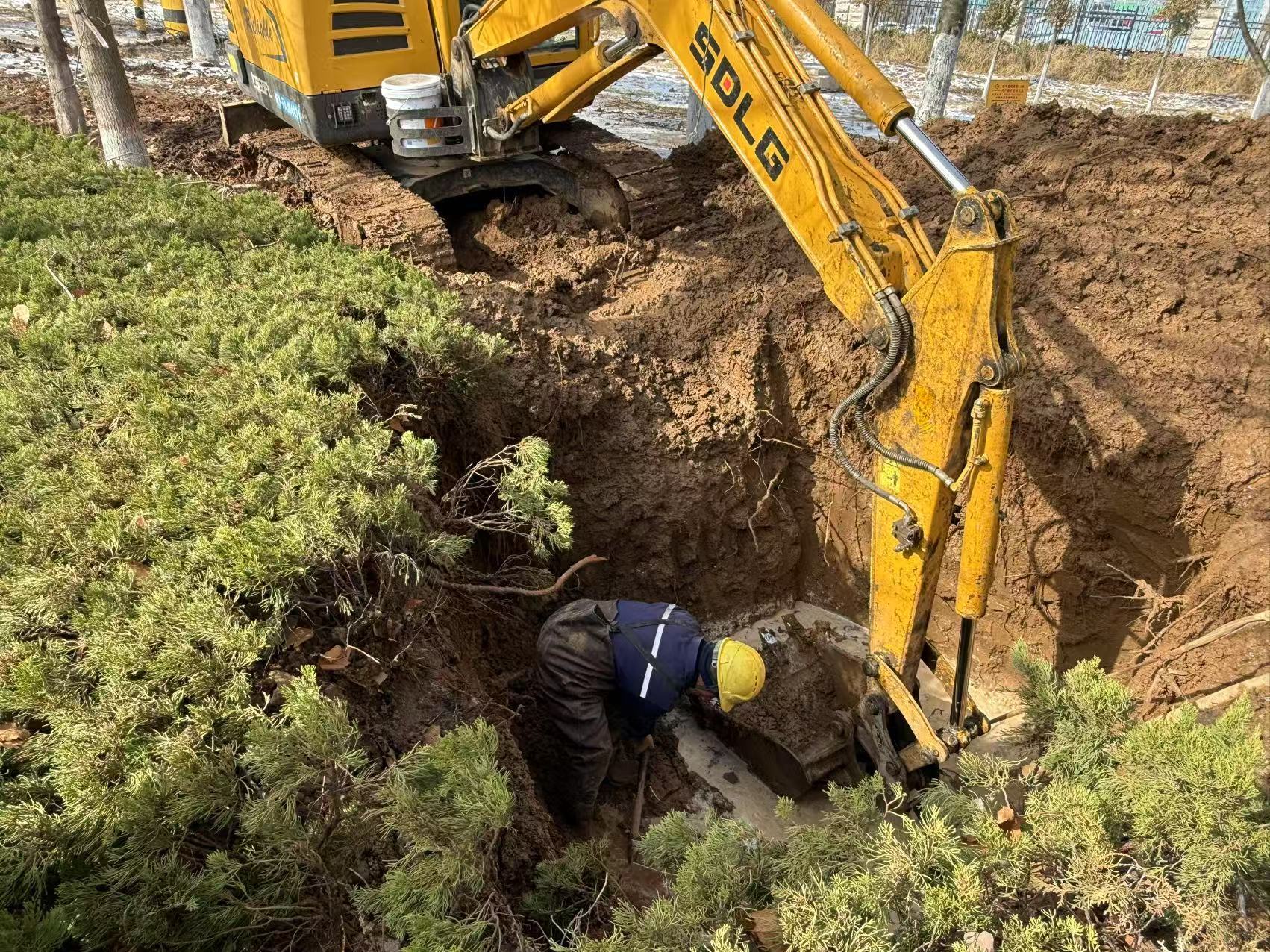 3月2日晚,嬴城水務(wù)巡察人員發(fā)現(xiàn)萊城大道重工東門主管道地段存在路面積水情況,經(jīng)現(xiàn)場(chǎng)查看,初步確認(rèn)管線凍裂漏水。夜晚持續(xù)降雪,氣溫降至零下4°C,為避免路面積水結(jié)冰影響周邊企業(yè)居民生產(chǎn)生活用水,維修人員決定連夜掘地?fù)屝?。冰冷刺骨的泥水中,維修人員持續(xù)奮戰(zhàn)十余個(gè)小時(shí)將漏水管線修復(fù)完畢,跑出了雪夜搶修的“水發(fā)速度”。