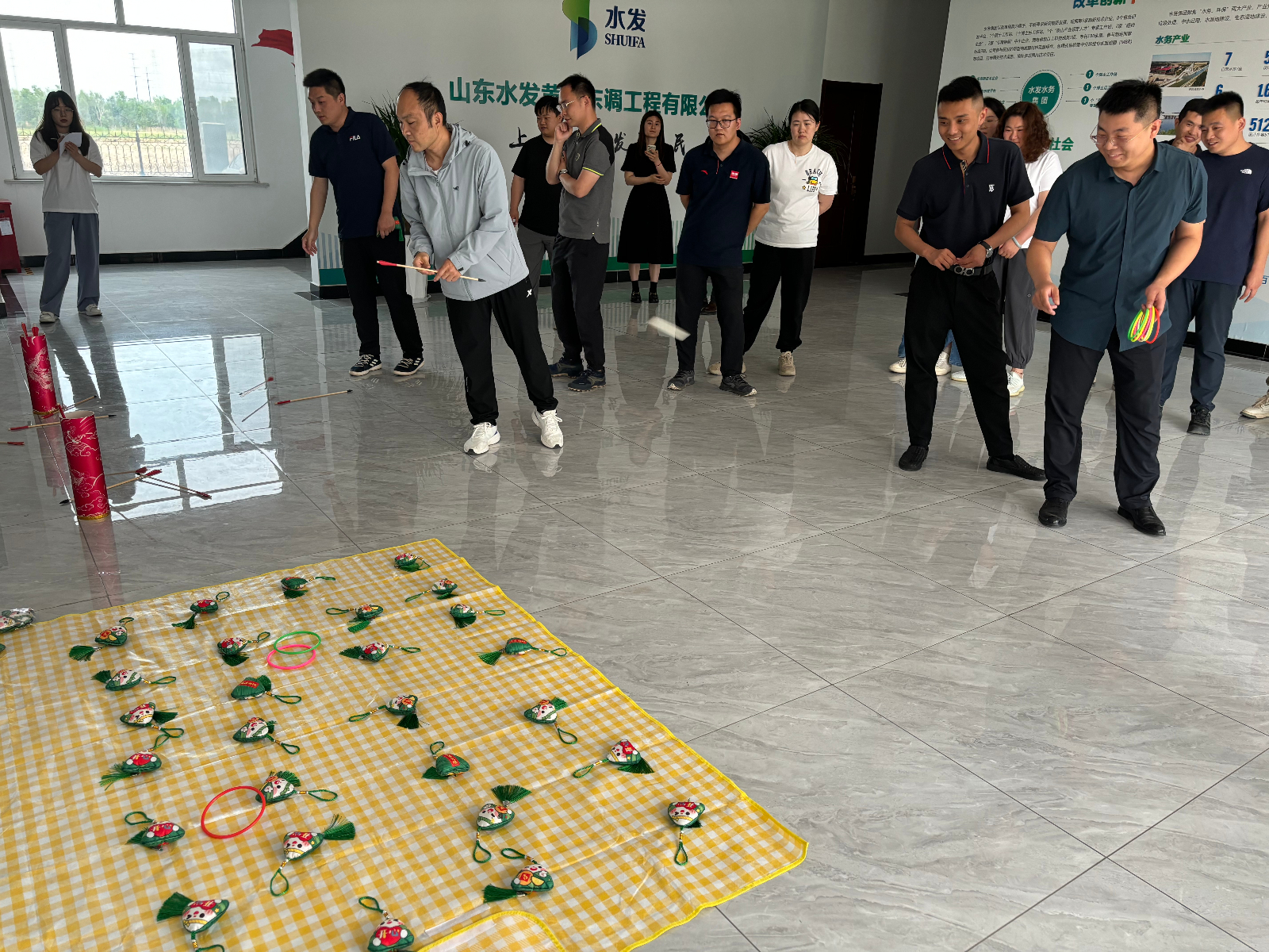 本次端午節(jié)活動分為游戲互動和包粽子環(huán)節(jié)。活動現(xiàn)場歡聲笑語不絕于耳,投壺比賽激起了參與者們的熱情,每人有八次投壺機會,大家站在規(guī)定的投擲線后,專注投擲,場面熱鬧有趣。緊接著是套粽子比賽,大家摩拳擦掌,爭取每一次套中粽子香包的機會,盡情釋放節(jié)日的喜悅與活力。