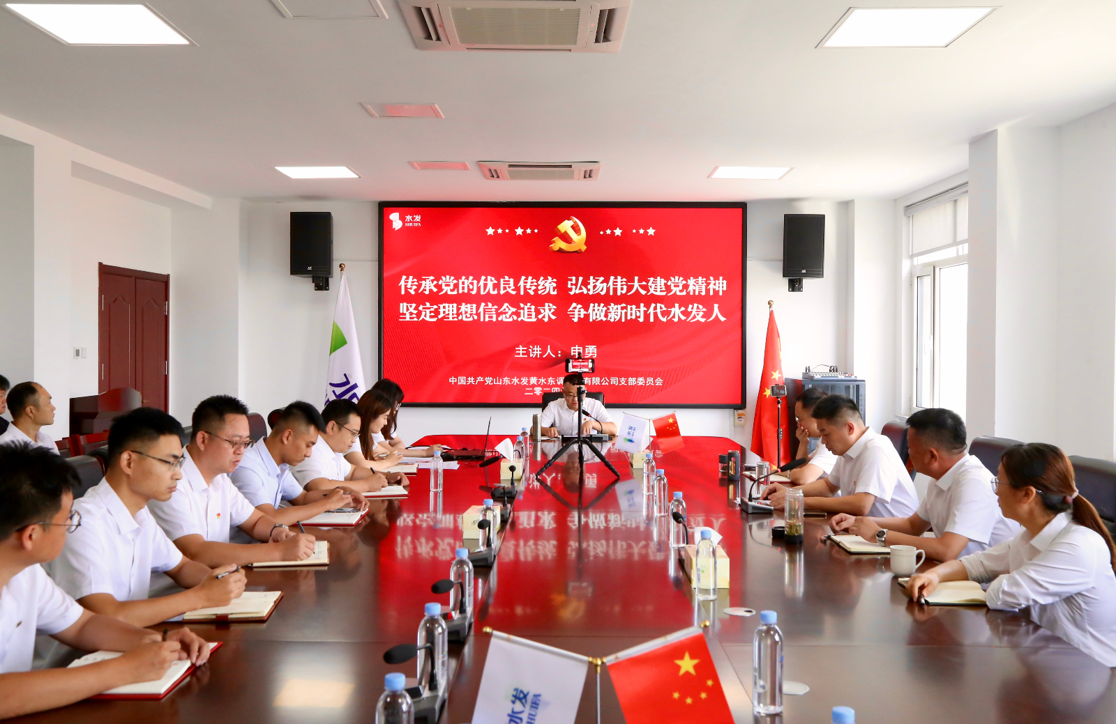 在中國共產(chǎn)黨成立103周年到來之際,為弘揚偉大建黨精神,進一步增強黨員的責任感和使命感,提升支部全體黨員黨性修養(yǎng)和紀律規(guī)矩意識。6月26日上午,黃水東調(diào)黨支部開展“七一”專題黨課活動,黨支部書記申勇同志以“傳承黨的優(yōu)良傳統(tǒng) 弘揚偉大建黨精神,堅定理想信念追求 爭做新時代水發(fā)人”為題進行授課。支部全體黨員及公司干部職工參加活動。